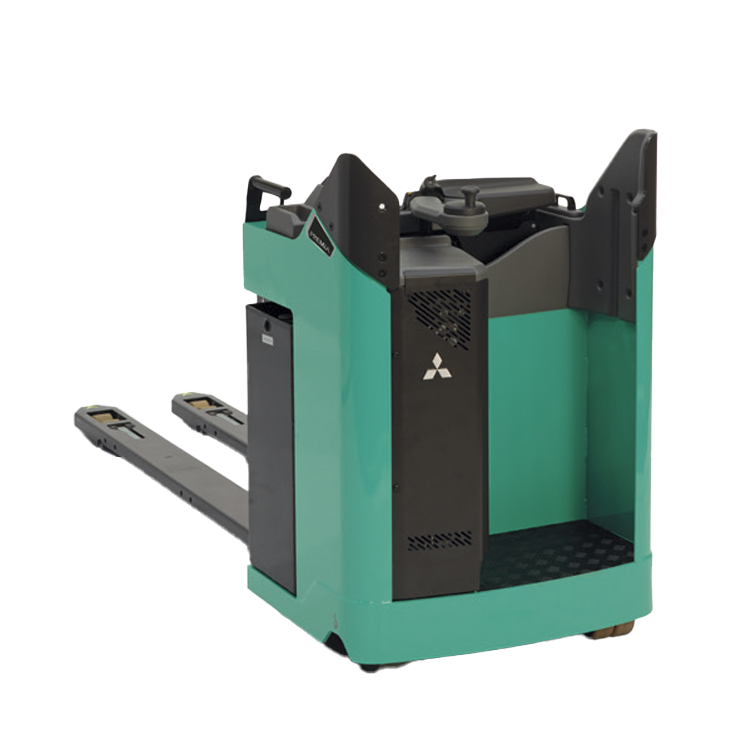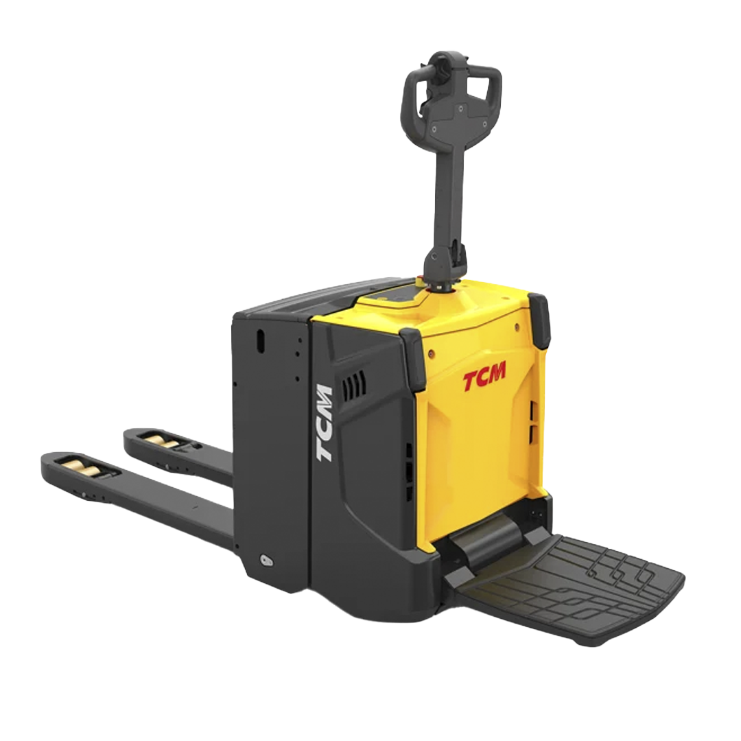 Transpaleta compacta de conductor acompañante con o sin plataforma plegable para conductor montado.